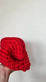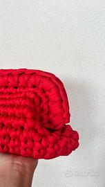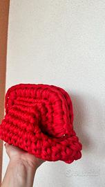 Clutch bag di colore rosso, realizzato interamente a mano.