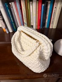 Clutch Bag fatta a mano con uncinetto. base rigida in simil pelle con piedini per evitare di sporcarla. i manici si possono facilmente rimuovere e riattaccare. Elegante e molto capiente.