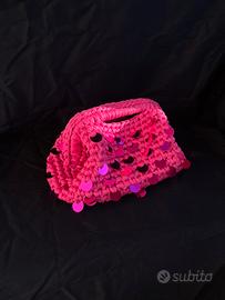Clutch bag fatta a mano con uncinetto, chiusura 20cm, colore fucsia con paillettes. Per qualsiasi informazione sono disponibile!❤️
