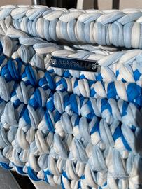 Clutch bag handmade con chiusura da 22 cm Filato in cotone bianco, azzurro e blu. ig: magalu.crochet