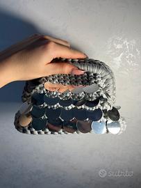 borsetta fatta a mano argento con pailettes