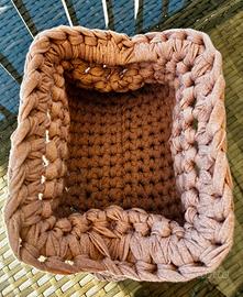 Clutch bag ad uncinetto in fettuccia lurex rosa. Adatta per cerimonie. Pezzo unico