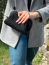 Clutch bag nera con catenella argento