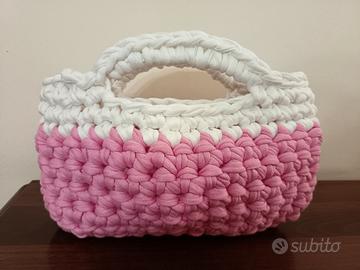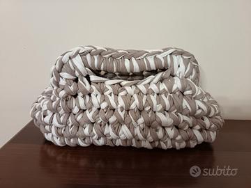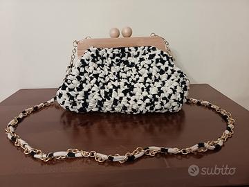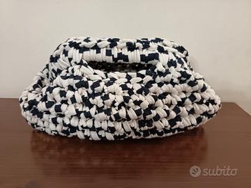 Realizzo clutch bag in fettuccia all' uncinetto. Le foto sono dimostrative, su richiesta eseguo in vari modelli, colori e grandezza.