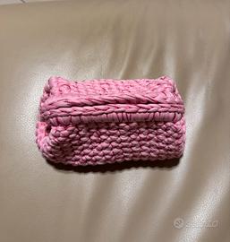 - tessuto in lycra rosa confetto e cordino brillantinato fucsia;
