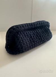 Elegante clutch in crochet đź’™ fatta a mano, colore blu scuro, con chiusura clic clac.