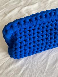 Clutch fatta all’uncinetto di colore blu elettrico con chiusura di 20cm.