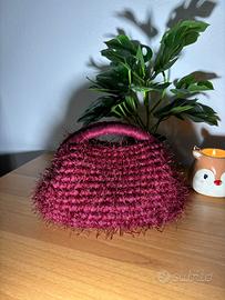 Clutch artigianale "Il mondo di Auri" - Bordeaux con pelo