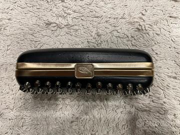 Vendo clutch Zara nera con struttura in metallo color ottone e borchie. Stupenda, misura circa 15 cm. Buone condizioni.