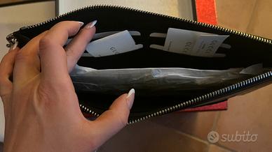 Pochette Gucci originale, modello clutch, realizzata in tessuto GG Supreme con iconico logo Gucci ricamato “Blade” sul fronte. Dotata di chiusura con zip, interno foderato e capiente per l’essenziale (telefono, portafoglio, chiavi). Può essere utilizzata come pochette da mano o inserita in una borsa più grande. Condizioni: Nuova, mai utilizzata. Vendo per inutilizzo