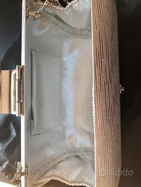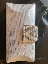 Elegante minibag modello clutch rigido, brand Luisa Spagnoli, con chiusura gioiello a clip, in metallo argentato e sagomato. Ha una sottile catena per portarla a tracolla. È dotata della sua custodia originale. Mai utilizzata. Perfetta. Può essere abbinata all’abito blu Luisa Spagnoli che vendo su questo sito. Prezzo trattabile.