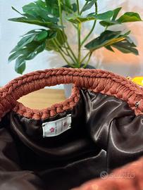• Dettaglio in fettuccia color mattone lurex, che dona un effetto brillante e sofisticato, aggiungendo un tocco di stile unico.
