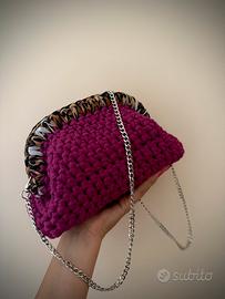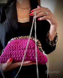 Pochette fatta mano in fettuccia magenta con manico leopardato