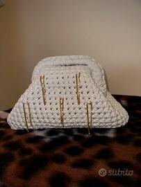 Borsa fatta a mano colore bianco con strass pendenti.