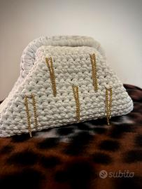 Borsa fatta a mano colore bianco con strass pendenti.