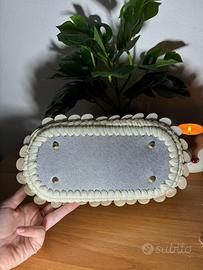 Questa clutch panna, impreziosita da paillettes argento, è il dettaglio perfetto per ogni occasione speciale.
