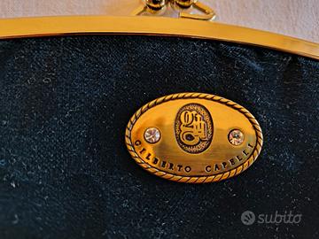 clutch pochette borsa vintage nero velluto e rifiniture colore oro in metallo. Gilberto Capelli, ottime condizioni