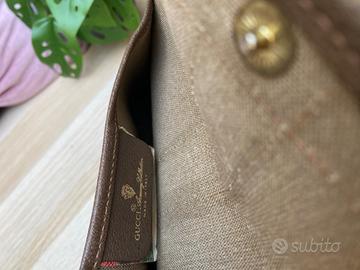 Clutch/pochette Gucci, GG, vintage. Presenza di superficiali segni di usura in particolare negli angoli alti. Misura: circa 19,5 x 12,5 cm.