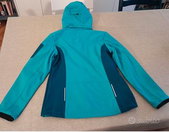 Giacca donna in Softshell con cappuccio staccabile color Tiffany con inserti rosa - senza cartellino mai messa (regalo sbagliata misura)