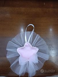 coccarde piccole per fuori porta clinica o ospedale o semplicemente per stanzetta. realizzate a forma di stellina in tulle e raso. il prezzo si riferisce a singola coccarda