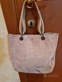 Borsa in pelle e suede (pelle scamosciata) colore beige e rosa