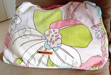 borsa in tessuto vintage ,iconico marchio coccinelle chiusura con zip tutta foderata misure larghezza 36 altezza 23 profondità 15 .presenta una macchiolina sul fondo (ved foto) e i manici leggermente scoloriti