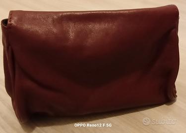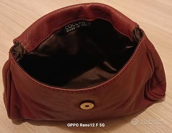 Pochette di vera pelle ,tinta unita color vinaccio,chiusura a calamita,con fiocco decorativo, logo Coccinelle. Ritiro presso Bologna non spedizione