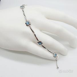 COD.101A.26 BRACCIALE ORO BIANCO 18K 750 FIORI TOPAZI CELESTI CM.18 GR.6,50