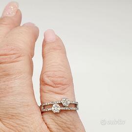 COD.1375C.25 ANELLO ORO BIANCO 18K 750 DOPPIA RIVIERA DIAMANTI GR.3,44