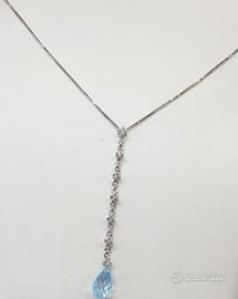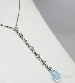COD.145A.25 COLLANA ORO BIANCO 18K 750 CM.43 GR.4,6 ,CON CIONDOLO A FIAMMIFERO AVENTE 6 DIAMANTI DA 0,04CT + 1 DA 0,06 CT CIONDOLO A GOCCIA ACQUA MARINA 1,3CT