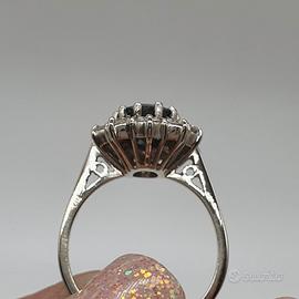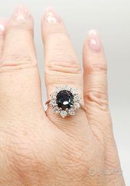COD.1474.25 ANELLO ORO BIANCO 18 750 ZAFFIRO CENTRALE 2,5 CT DIAMANTI 1 CT TOTALE GR.5