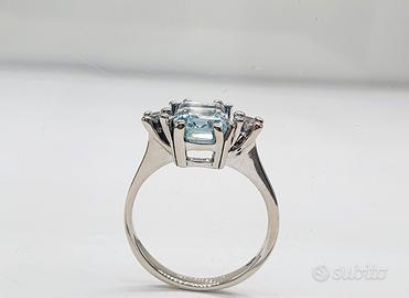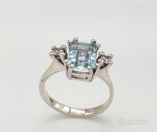 COD.1569.25 ANELLO ORO BIANCO 18K 750 PIETRA CENTRALE ACQUA MARINA CON 2 DIAMANTINI GR.2,94