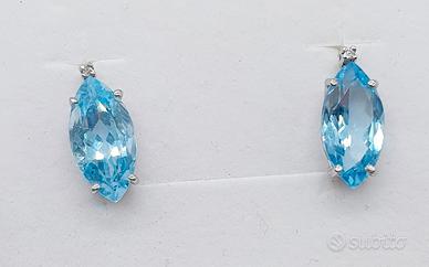 COD.159B.25 ORECCHINI "MILUNA" ORO BIANCO 18K 750 CON ACQUA MARINA CT. 5,5 2 DIAMANTINI 0,02 CT GR. 4,88