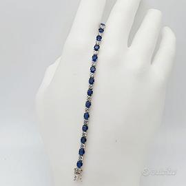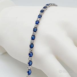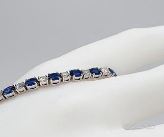 COD.2020.25 BRACCIALE TENNIS ORO BIANCO 18K 750 22 ZAFFIRI 11 CT TOTALI, 22 DIAMANTI 12,8 CT TOTALI CM. 18 GR.12,80