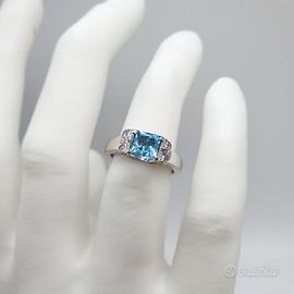 COD.51.26 ANELLO ORO BIANCO 18K 750 ACQUAMARINA 1,10 CT TOTALI DIAMANTI 0,16 CT TOTALI GR.5,69