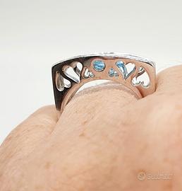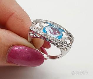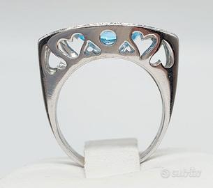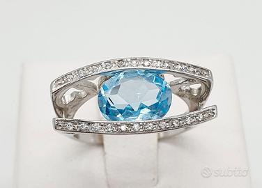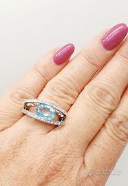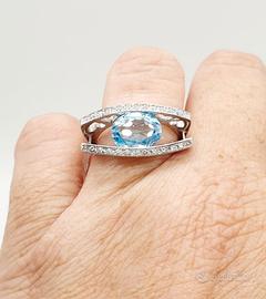 COD.740.25 ANELLO ORO BIANCO 18K 750 CON ACQUA MARINA CENTRALE 1,75 CT BRILLANTI 0,22 CT GR.7,50