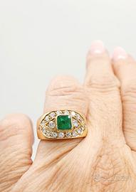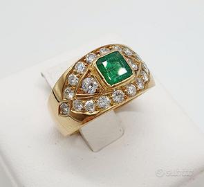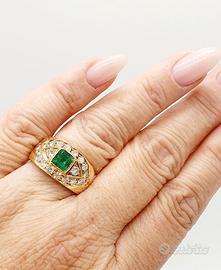 COD.915.25 ANELLO A FASCIA ORO 18K 750 SMERALDO 0,06 CT BRILLANTI 0,66 CT TOTALI GR.9,20