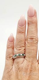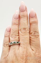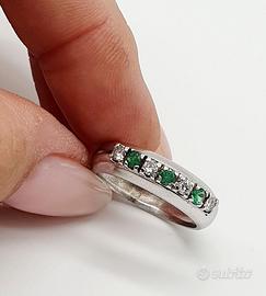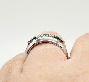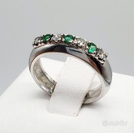 COD.970E.25 ANELLO ORO BIANCO 18K 750 SMERALDI E BRILLANTI 0,24 CT TOTALI GR.6,56