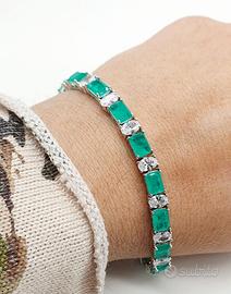 COD.TQCW16 E COD.TQVW16 BRACCIALI TENNIS NUOVI, IN ARGENTO 925 ZIRCONI RETTANGOLARI E OVALI IN VERSIONE COLOR CELESTE ACQUA MARINA E COLOR VERDE SMERALDO GR.14,04 CM. 16 + PROLUNGA POSSONO ARRIVARE SINO A 20 CM