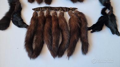 Lotto di code di visone maschio, provenienti da collezione privata di famiglia. La pelliccia, folta e lucente, è conservata con grande cura e rappresenta un esempio di artigianato e moda vintage.