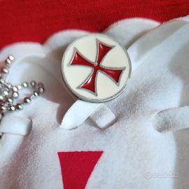 - Pendente con croce templare a fondo bianco smaltato e croce templare smaltata in rosso