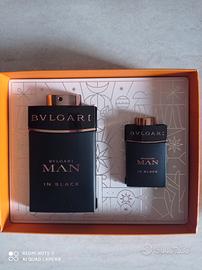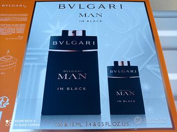 Cofanetto uomo Bvlgari Man in Black. La confezione comprende: Profumo 100 ML+ Profumo 15 ML. Bellissima confezione regalo per Natale.