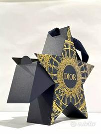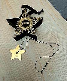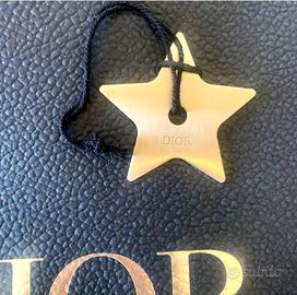 Collana in cordino nero scorrevole con pendente Stella Portafortuna di Christian Dior "Metal Star" completa di confezione regalo; scatola a forma di stella ad apertura laterale + bustina/Shopper, tutto originale Dior. Ottima idea regalo originale per lei! Il ciondolo portafortuna è in metallo con finitura dorata a specchio, reca sul fronte l'incisione del logo "Dior" a conferma dell'autenticità. Rappresenta l'iconica stella, simbolo portafortuna della Maison Dior fin dal 1946, quando Christian Dior ne trovò casualmente una per strada che interpretò essere di buon auspicio e lo convinse a non indugiare nel fondare la sua leggendaria casa di moda. Inizialmente questi ciondoli venivano offerti ai clienti VIP con acquisto (GWP) da Dior Beauty/Fragrance. Oggi sono molto ricercati come portafortuna e possono essere utilizzati in molteplici modi, nello specifico è stato convertito in collana. Condizione: mai indossata, è nuova. Misure: - ciondolo c.ca 5/6 cm - cordino estensibile fino a cm 60. Consegno in zona San Paolo (ore pasti), oppure spedisco (preferisco InPost che avendolo sotto casa posso spedire velocemente).