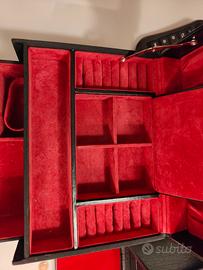 Rivestimento esterno tessuto e similpelle nero, internamente velluto rosso.
