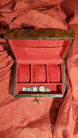 Cofanetto portaorologi antico in radica, interno in floccato rosso, adatto a ogni tipo di orologio, braccialati e non.Interno completamente nuovo, esterno originale dell'epoca.