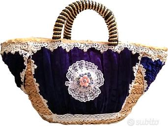 Fatta a mano, materiale fodera in tessuto, materiale manico in fibra , doppio manico, chiusura a bottone, dimensioni large, tessuto cotone lavorato e seta
