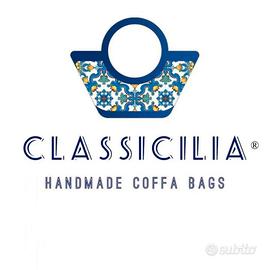 coffa siciliana ornata con tessuto in seta e cotone lavorato.Pezzo Unico.
