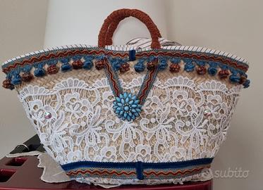 Coffa, completamente foderata, decorata con pizzobe passamanerie di pregio ideale per l' estate e non passare inosservate