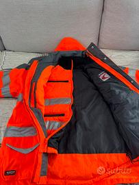 Categoria:Antivento, Impermeabile, Alta visibilità, Antifreddo Tg 50 Descrizione capo interno:bande ed inserti reflex, maniche staccabili tramite zip, polsini e collo elasticizzati, tasca petto e 2 tasche fondo con zip spalmate Descrizione capo esterno:4 ampie tasche anteriori, bande ed inserti reflex, cappuccio regolabile e staccabile, doppia paramontura frontale, passante auricolare, polsino regolabile, tasca interna con zip, tasca porta cellulare con E-WARD, termonastratura, toppa di rinforzo su gomiti, vita regolabile tramite coulisse Composizione capo interno:100% poliestere spalmato poliuretano, IMBOTTITURA: 100% poliestere, FODERA: 100% poliestere Composizione capo esterno:100% poliestere spalmato poliuretano, FODERA: 100% poliestere Grammatura capo interno:150 g/m² Grammatura capo esterno:200 g/m² Marcatura e normative: EN ISO 13688 EN ISO 20471 3 GO/RT 3279 EN ISO 20471 2 inner jacket EN 342 Icler0,375(B) 3 X PROTECTION + SAFE EN 343 4-4-X (only Outer Jacket) EN 343 4-1-X