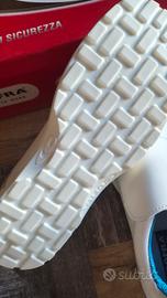 Settori di utilizzo:calzature per l'industria alimentare, calzature per l'industria ospedaliera Tomaia:NEWTECH traspirante, idrorepellente Fodera interna:TEXELLE 100% poliammide, traspirante, assorbente e deassorbente, antiabrasione Soletta:EVANIT, con speciale mescola di EVA e nitrile, ad elevata portanza e spessore variabile (12mm - 8mm - 3,8mm). Termoformata, anatomica, forata e rivestita in tessuto altamente traspirante. Antistatica grazie ad uno specifico trattamento superficiale e a cuciture realizzate con filati conduttivi Tomaia:NEWTECH traspirante, idrorepellente Fodera interna:TEXELLE 100% poliammide, traspirante, assorbente e deassorbente, antiabrasione